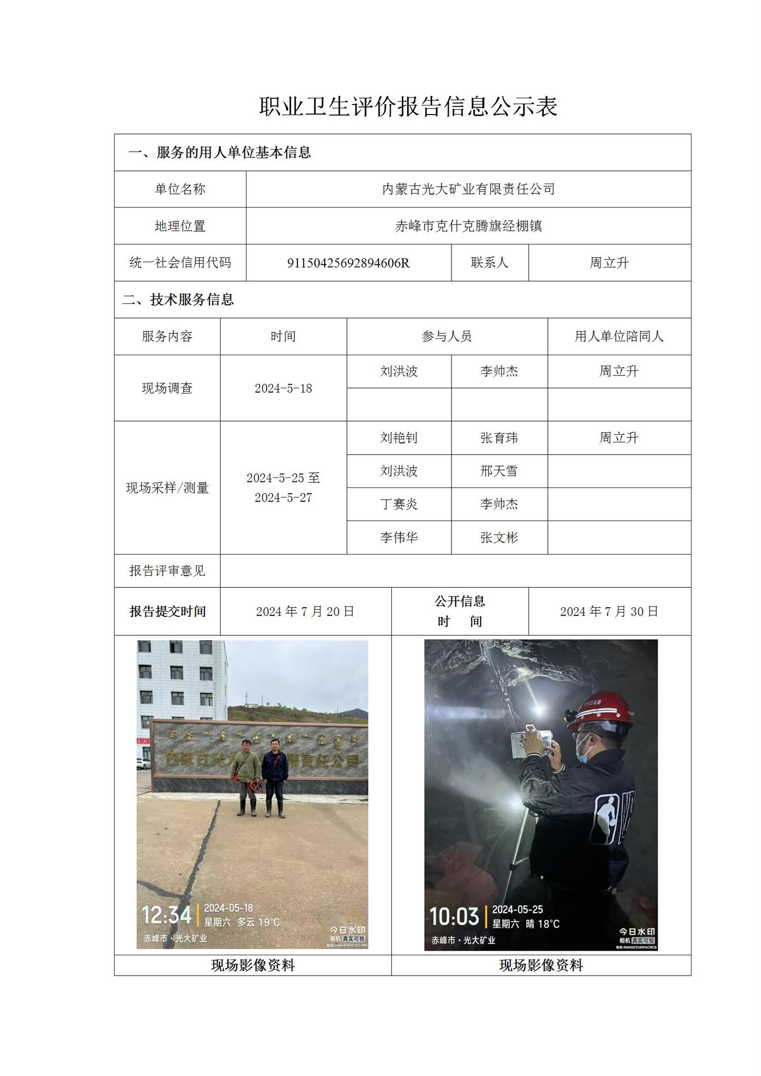 内蒙古光大矿业有限责任公司职业病危害现状评价