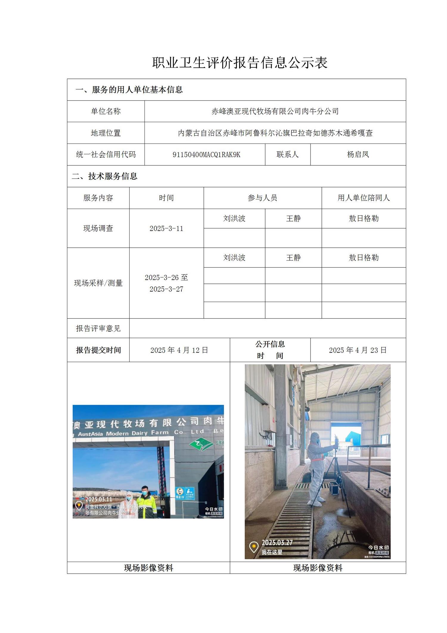 赤峰澳亚现代牧场有限公司肉牛分公司职业病危害因素定期检测