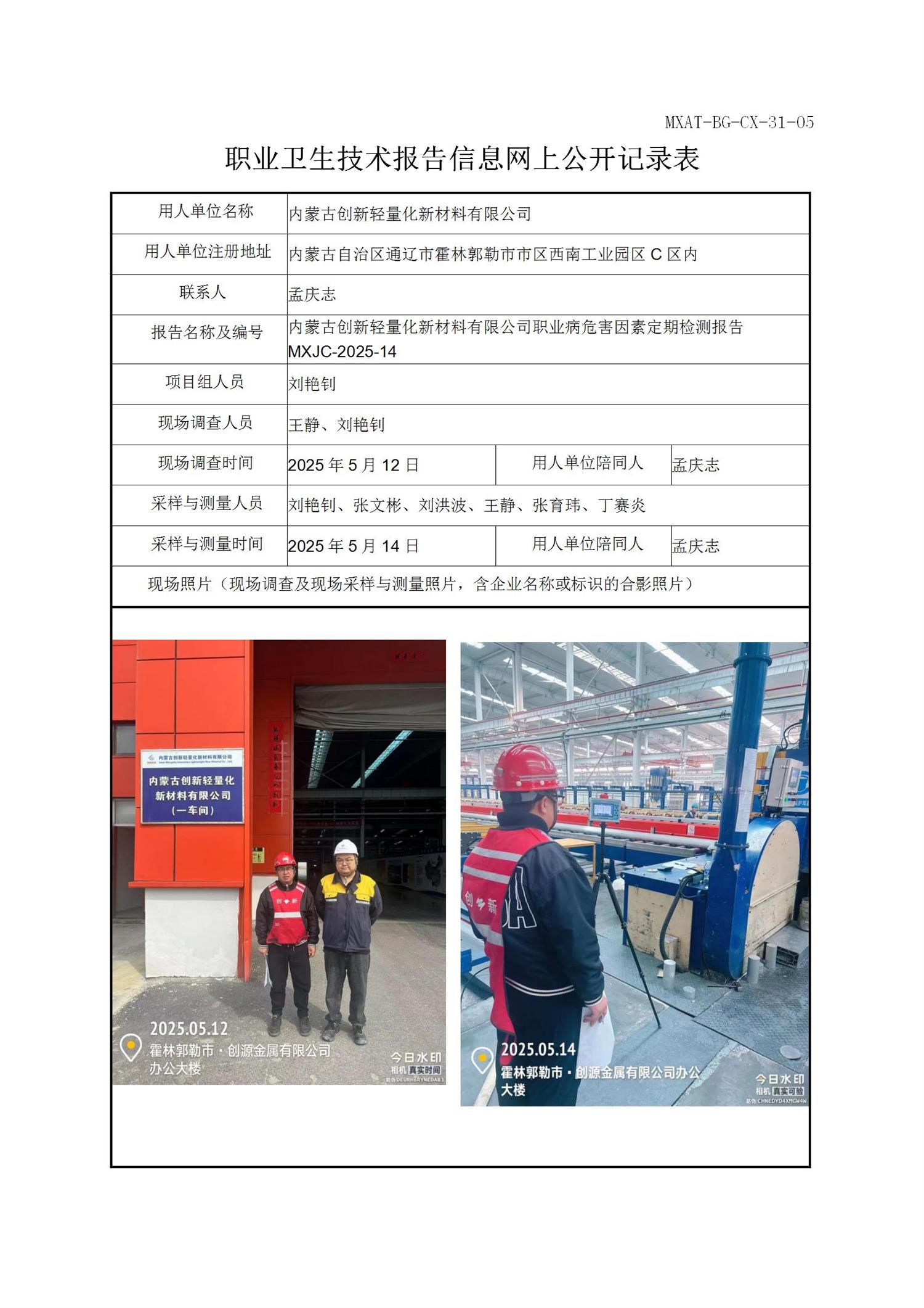 内蒙古创新轻量化新材料有限公司职业病危害因素定期检测