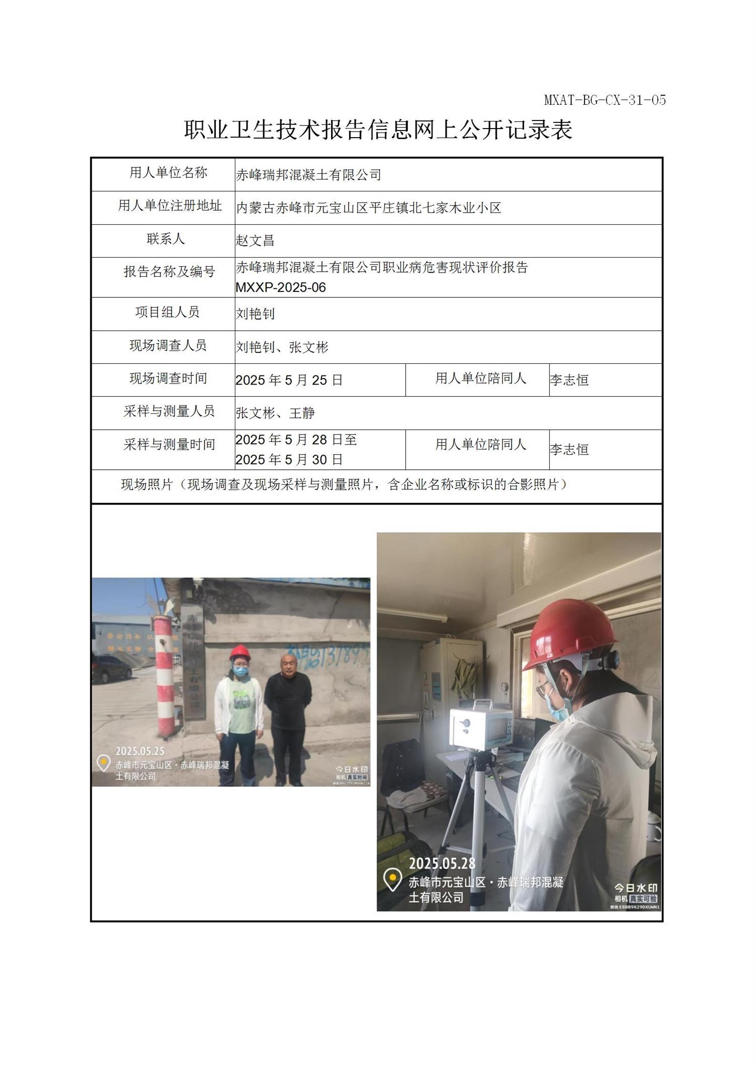 赤峰瑞邦混凝土有限公司职业病危害因素现状评价