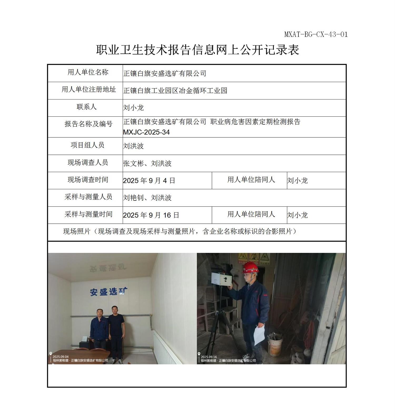 正镶白旗安盛选矿有限公司职业病危害因素定期检测报告