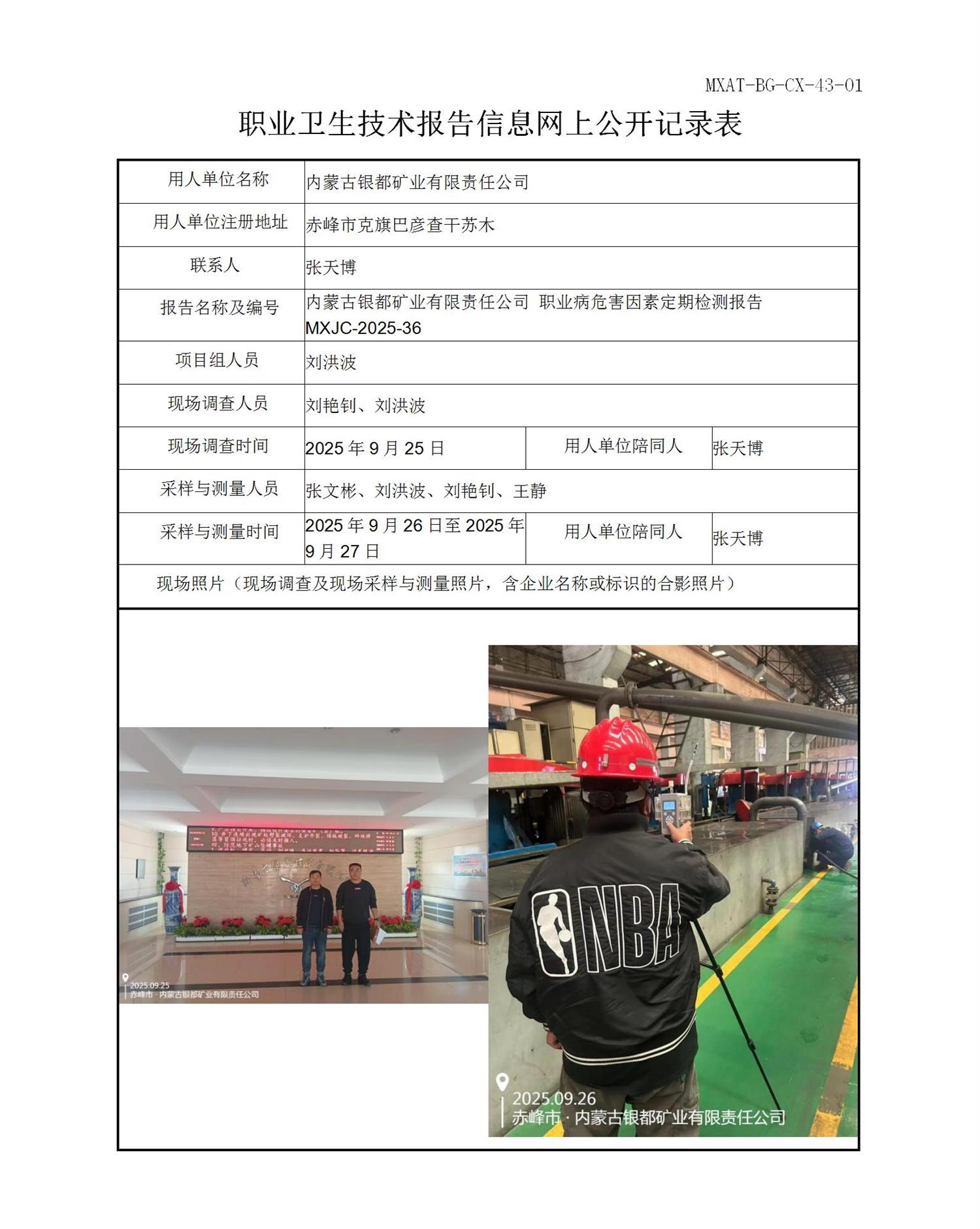 内蒙古银都矿业有限责任公司职业病危害因素定期检测